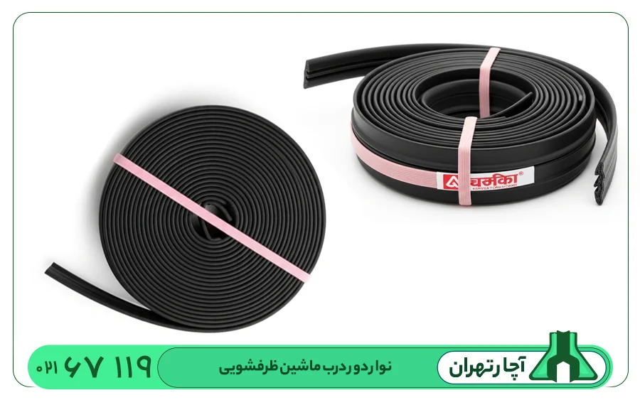 نوار دور درب ماشین ظرفشویی یکی از قطعات حیاتی برای جلوگیری از نشت آب در حین کار کردن ظرفشویی است. این نوار معمولاً از جنس لاستیک یا مواد مشابه ساخته شده و دور تا دور درب ماشین ظرفشویی قرار می‌گیرد تا به خوبی بین درب و بدنه ظرفشویی چفت شود و مانع از نشت آب گردد.